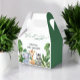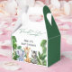 Mande seus convidados para casa com uma pequena magia da selva! Estas adoráveis caixas de favores apresentam um elefante encantador, girafa, e zebra cercados por verde tropical, completo com uma mensagem sincera de "Obrigado". Perfeito para pequenas guloseimas, doces ou guardas para tornar seu chá de fraldas realmente inesquecível!