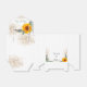 Um fundo branco decorado com girassóis, eucalipto verde e ouros e pó de ouro falso. Com o texto: Obrigado. Personalize e adicione seus nomes.