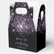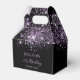 Elegante, clássico, glamouroso e feminino para uma festa de aniversário de 21 ruas (ou qualquer idade) favores. Um fundo preto chic. Na frente e atrás: Personalize e adicione um nome, 21 anos e uma data. O nome é escrito com um moderno estilo escrito à mão. Decorado com pó de brilho púrpura. Texto cor púrpura claro.
