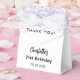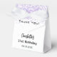 Uma festa de aniversário elegante e glamourosa de 21 ruas (ou qualquer idade). Um fundo branco chic com violeta, confete colorido de lavanda. Com o texto: Obrigado! Personalize e adicione seu nome. O nome é escrito com um script de estilo manuscrito de tendência.