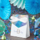 Mande seus convidados de casamento para casa com lembranças doces de seu dia especial com esta caixa de favor em azul-mar pálido com vidro do mar na flape frontal. Personalizado com um monograma inicial do novo sobrenome casal junto com os primeiros nomes do casal feliz. Adicione a data do casamento atrás. Todos os escrevendo podem ser alterados ou removidos.