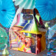 Imagens são rostos coloridos de palhaços felizes