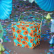 Papaya tropical divertida e frutado em um fundo de turquesa vibrante