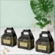 Diga "Parabéns" ou "Feliz Aniversário" em uma caixa de presentes com seu padrão de mensagem personalizado. O fundo é um impressão completo das três (3) linhas de texto dourado impressas em linhas diagonais sobre preto. Personalize este padrão de mensagens preto e dourado com até 3 linhas de texto 28 caracteres cada. (os caracteres incluem: letras, números, espaços e pontuação). A placa frontal tem espaço e modelo para acrescentar uma mensagem "Obrigado". Esta design é divertida para todas as idades e para todas as ocasiões, pessoal ou profissional. Todo o texto pode ser alterado com as modelos de texto para corresponder a qualquer celebração; faça dele seu!