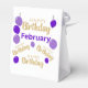 Feliz aniversário, aniversários de fevereiro, comemorações de fevereiro com estas elegantes caixas de favores, concebidas para adicionar um toque de sofisticação ao seu partido! Apresentando "Parabéns" em ouro imerso, estas caixas são lindamente acentuadas com balões roxos e a palavra "fevereiro", inspirada pela pedra de nascença ametista do mês. Perfeito para segurar guloseimas, presentes pequenos ou favoritos para festas, essas caixas resistentes são tão práticas quanto são na moda. Faça sua celebração de fevereiro inesquecível com esses vitais e charmosos partidos!