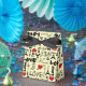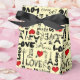 Design de texto de Paris para Dia de os namorados com formas vermelhas de coração, Torre Eiffel e decoração de lâmpadas de rua em fundo amarelo