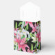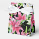 Caixa de favores de festas mostrada em um adorável impressão de lírios cor-de-rosa em uma cor preta de fundo. Personalize este item ou comprar como está.