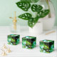 Uma caixa de favores do partido para amantes da vida selvagem com uma coleção de flamingos. Estas aves cor-de-rosa estão num fundo verde, uma imagem digital esquisita criada da minha fotografia original do flamingo ©Annabel Potter