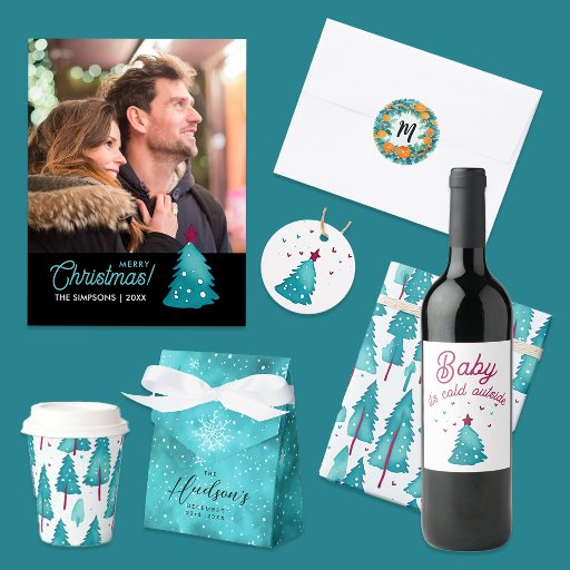 Esta caixa de favores do Natal moderno apresenta um belo design de inverno maravilhoso com flocos de neve com aquarelas contra um céu azul festivo e turquesa. A caixa inclui um nome manuscrito na escrita na moda negra, em conjunto com uma tipografia moderna limpa e fácil de ler. Todo texto é totalmente personalizável, portanto você pode adicionar sua própria mensagem pessoal. Ideal para presentes de Natal, chás de fraldas, ou aniversários de inverno, esta encantadora caixa de favor traz um toque pessoal e festivo às suas ocasiões especiais.
