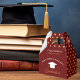 Esta caixa de favorecimento de festa de formatura vermelho e ouro personalizada apresenta tipografia branca-quic e dourada sob um nome de segundo grau ou faculdade para a classe de 2024. Personalize com o seu ano de graduação sob a adorável caligrafia de parabéns para uma decoração personalizada de cerimônia de formandos de excelente. Bolinhas clássicas decoram os lados.