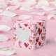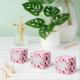 Pássaros feitos num estilo de colcha com corações num fundo cor-de-rosa polka pontilhado. Divertido para o Dia de os namorados.