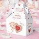 Um pouco de amor está a caminho! Traga a sensação mais adorável ao seu chá de fraldas com este bebê querido urso as caixas de favores em vermelho e bege com um bebê adorável segurando um doce biscoito em forma de coração, pequenos corações no topo. Perfeito para o seu chá de fraldas neutro de fevereiro. Personalize facilmente o texto ou deixe algum vazio dele. - Kate Eden Art