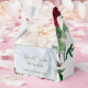 Caixa de Favorecimento da Rosa vermelha de Casamento Mauve Peony Beige Dahlia Astilbe Emerald Eucalyptus - Este maravilhoso produto é decorado à frente com um fundo azul claro, parcialmente apinhado, que ostenta o nome do casal e a data do casamento, bem como a mensagem "obrigado você". Com exceção do dorso, que carregar a cor do rosa, o resto do produto é coberto por uma coleção de várias flores e do eucalipto esmeraldo. Nota: O campo de texto do produto é totalmente personalizável - Para editar, basta clicar em PERSONALIZAR para revelar os campos editáveis - e fazer alterações de acordo.