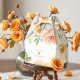 Caixinha De Lembrancinhas Pêssego, flores e folhas de aquarela