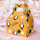 Caixa de seleção amarela, branca e preta de Natal com pinguins tocando picleball e flocos de neve em fundo amarelo. Excelente ideal para terminar, você apresenta para seu amigo ou membro da família de picleball
