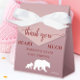 Aprecie os seus convidados com estes Obrigado Beary Muito chá de fraldas a favor das bolsas. Apresentando um fundo de ombré cor-de-rosa macio, silhuetas de urso de floresta e um arco de fita de satin, eles são a perfeita embalagem rústica, mas elegante para pequenas guloseimas, doces, ou guardas no seu chá de fraldas.