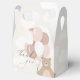Podemos esperar! Celebre o seu pequeno com as nossas adoráveis e simples caixas de chá de fraldas de balões de ursos rosa para presentes. Esta design apresenta uma paleta de marfim e cor rosa, um urso marrom nas nuvens, assim como sorif elegantemente balanceada e sans serif typografia, perfeita para seu chá de fraldas macio e feminino.