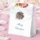 Faça uma brisa de presente de Natal com nossa charmosa bolsa de presente de Natal. Adorado com uma deliciosa design de bagas vermelhas e cones de pínus contra um cenário branco intocado, com "Feliz Natal", em azul na frente com um lugar para personalizá-lo no verso, é a maneira perfeita de apresentar seus íntimos presentes. Adicione um pouco de elegância festiva à sua época de férias com esta bolsa de presente elegante.