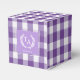 Caixas De Favor De Monograma Personalizadas, Design De Padrão De Gingham Roxo. Estas caixas de favoritos de monograma de gingham são o toque perfeito para o seu casamento ou ocasião especial. Disponíveis em seis cores diferentes, eles adicionam uma pop de cor alegre e, ao mesmo tempo, permanecem elegantes e versáteis. Ideal para casamentos rústicos, celebrações brancas clássicas ou eventos com tema de cor coordenada, essas caixas são uma na moda para apresentar pequenos presentes ou doces doces. Personalize com seu monograma e data para criar uma manutenção significativa para seus convidados.