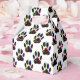 Um padrão de pata de cachorro imprime com confetti um galhardete em uma caixa de favor. Condecoração festiva para festas relacionadas a cães e pessoas que os amam.