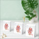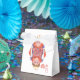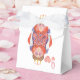 Caixa branca de favores ao estilo tenda com fita branca com uma imagem, na frente e atrás, de uma carta de jogo da Rainha do Coração. Tente mudar a fita para vermelho ou azul para contraste. Veja toda a coleção Wonderland Favor Box nos TOUCHES ESPECIAIS | seção favoritos para festas.