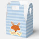 Ilustração de uma cabeça de Fox, rolagem e texto personalizado sobre um fundo listrado azul