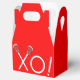 Festa de lacrosse criativa ou evento esportivo em equipe favorece caixas com design de lax em fundo vermelho.
