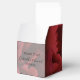 A bonito Caixa de Favor do Casamento Floral Vermelho pode ser personalizada com os nomes da noiva e do noivo e data e preenchida com favoritos para festas para o chá de panela vermelho de flores ou a recepção de casamentos. Estas elegantes caixas de favores botânicos personalizados apresentam uma fotografia floral pintada digitalmente de pétalas de flores vermelhas do cravo.