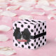 Caixa de favorecimento ao estilo clássico quadrado com uma imagem divertida de bolinhas pretas em cor-de-rosa adornada com uma fita preta e um arco preto e um charme de Cadillac rosa opcional. Ver confete correspondente, etiqueta de favor, sacos de presentes, adesivo quadrado e papel de embrulho. Veja toda a coleção Nifty 50 Box em TOUCHES ESPECIAIS | Seção Favoritos para festas.