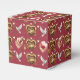 Caixinha De Lembrancinhas Romantic Maroon Pattern Doves Hearts Emblem