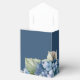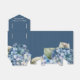 Esta caixa de presente de casamento romântico apresenta um design floral em aquarela com hortênsias azuis sobre um fundo azul-marinho. Delicados buquês de flores de hortênsia são retratados em torno da parte inferior.