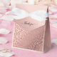 Adicione um toque de estilo e luxo ao seu evento especial com estas Caixas de Favoritos de Impressão de Animais de Glam Dourados com Rosa, com uma textura da mancha-leopardo brilhante no fundo do rosa de ouro, com a frase "Obrigado" em roteiro manuscrito. Não hesite em contactar-me para obter ajuda na personalização ou se precisar de qualquer outro produto com este design.