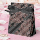 Caixa de lembrança elegante com padrões de damasco em rosa ouro e listras pretas.