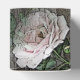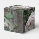Lindas rosas cor-de-rosa espalhadas pela madeira meteorológica.