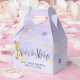 Esta bela caixa de favores apresenta uma lua aquosa e estrelas e seu texto personalizado junto com as palavras "Sobre a Lua" em um roteiro de caligrafia moderno. Use o formulário modelo para adicionar suas informações. O recurso Personalizar pode ser usado para alterar a fonte e o layout do texto.