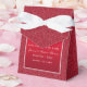 Casamento elegante, brilhante e romântico Obrigado Caixa de Favoritos com um arco vermelho romântico elegante com um diamante de joia de rocha num lindo fundo vermelho rubi com uma armação branca que inclui seus detalhes de eventos, e um bonito fundo de brilho vermelho brilhante. Este exemplo é para um casamento, mas é adequado para qualquer evento. Todo texto é totalmente personalizável para atender às suas necessidades. Se precisar de ajuda para personalizar o seu produto ou se quiser fazer a correspondência de produtos, entre em contato comigo através da minha loja e eu ficarei muito feliz em ajudá-lo.