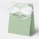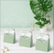 These wedding favor boxes feature a smooth sage green body topped with a coordinating watercolor flap accented by soft eucalyptus greenery, creating a romantic, nature-inspired presentation for your treats or small gifts. Finished with a crisp white ribbon, they add an elegant, personalized touch to each place setting while perfectly matching your sage stationery suite.