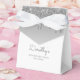 Obrigado convidados com essas caixas de favor elegantes, com uma imagem de brilho de falso prateado na aba superior da cinza. Personalize-os com o nome de convidado de honra na escrita da cinza de prata, juntamente com a ocasião e a data em cinzas de fundo de cinza pálida.