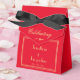 Caixa de Agradecimento Pessoal Elegante e Sofisticada Vermelha e Dourada com Nomes da Noiva e do Noivo. Escrita clássica dourada elegante e sofisticada