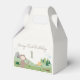 This adorable Slumberkins birthday favor box features the friendly Bigfoot character in a cozy woodland scene perfect for kids’ celebrations. Bigfoot is shown waving with a sweet smile, surrounded by rolling green hills, trees, clouds, and campsite details that reflect the calm and playful Slumberkins aesthetic. The design includes “Happy Birthday” text along with a customizable name and age, making each favor box feel personal and special. Ideal for party treats or small gifts, this design adds a warm, coordinated touch inspired by the Slumberkins world.