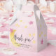 Esta bela caixa de favores apresenta uma lua aquosa e estrelas e seu texto personalizado junto com as palavras "obrigado você" em um roteiro de caligrafia moderno. Use o formulário modelo para adicionar suas informações. O recurso Personalizar pode ser usado para alterar a fonte e o layout do texto.