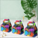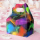 Um abstrato sonhador em tons vívidos de amarelo, verde, rosa, roxo, azul, turquesa, laranja, preto e mais adornando essas caixas de favor divertidas.