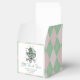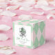 Estas bonitas caixas de presentes femininas de "Sorte Pequeno Obrigado" apresentam uma carruagem vitoriana irlandesa desenhada à mão, com um brilho e tons verdes macios, todos contra um adorável padrão de estilo rosa e verde. Personalizar com detalhes do evento. Impresso na frente e atrás. Estas caixas de presentes são da coleção de chás de fraldas "A Lucky Little Shamrock".