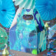 Várias tonalidades de azul, verde, violeta azul e branco em diferentes opacidades são colocadas em camadas para fazer um impressão abstrato de captura de olhos.