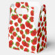 Caixa de favorecimento da festa mostrada em branco com um impressão de morango giro. Personalize este item ou comprar como está. Imagem do stock freepik.com