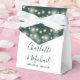 Caixa de favoritos de casamento verde esmeralda elegante com luzes bonito de cordas, nomes de script de assinatura na moda e data especial definida na tipografia quic. Você pode personalizar com seu próprio obrigado sua mensagem sob a tampa. Uma maneira perfeita de dizer obrigado aos seus hóspedes! Projetado por Thisnotme©