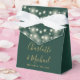 Caixa de favoritos de casamento emerald green e gold com luzes bonito de cordas, nomes de script de na moda e data especial definida na tipografia moderna. Você pode personalizar com seu próprio obrigado sua mensagem sob a tampa. Uma maneira perfeita de dizer obrigado aos seus hóspedes! Projetado por Thisnotme©