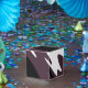 Caixinha De Lembrancinhas Submersão: Abstrato preto, branco, roxo e verde