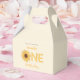 Caixa Clássica de 1º Aniversário do Girassol. A design de caixa de favores com tema de girassol simboliza coragem, um cheio de vida de entusiasmo e positividade é perfeito para a festa de aniversário especial de um menino ou de uma menina. Caixa editável de favoritos de 1º aniversário de Sunflower que você pode editar no site do Zazzle. Isto é perfeito para o seu material de festa.