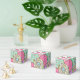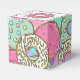 Favorito de festa de aniversário diversão e doce apresenta um padrão de rosquinhas pastel em verde-menta, rosa e amarelo. As rosquinhas têm aspergaminhos de cor pastel e outras coberturas doces. Na parte superior da caixa favor há uma área branca sólida com uma rosquinha rosa maior. À volta da rosquinha rosa está um texto personalizável na letra verde-menta que diz Muito obrigado por vir à minha festa! Esta design de rosquinha deliciosa combina com a nossa Rosquinha, Miss Rosquinha, Convites de festas de aniversários e artigos de papel.